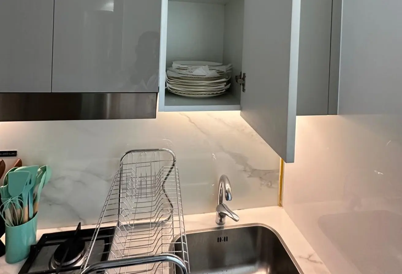 - Fully equipped kitchenette (utensils, knife set, kettle, coffee machine, microwave)
